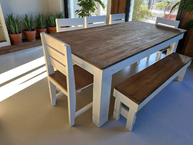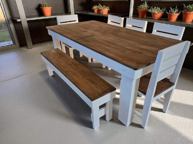 10 Seater with 6x chairs + 1x bench (White & Brown)